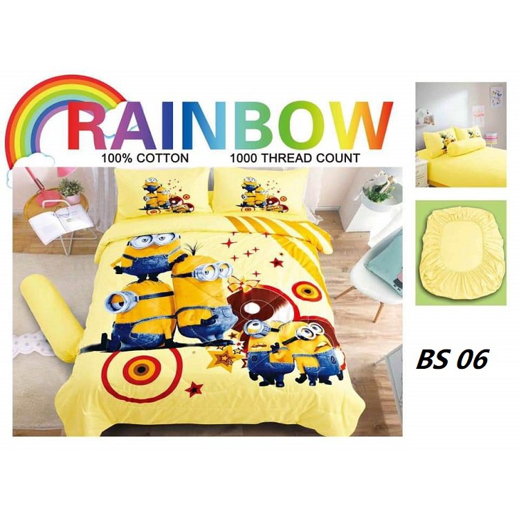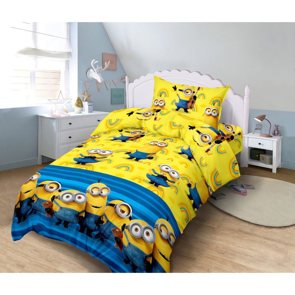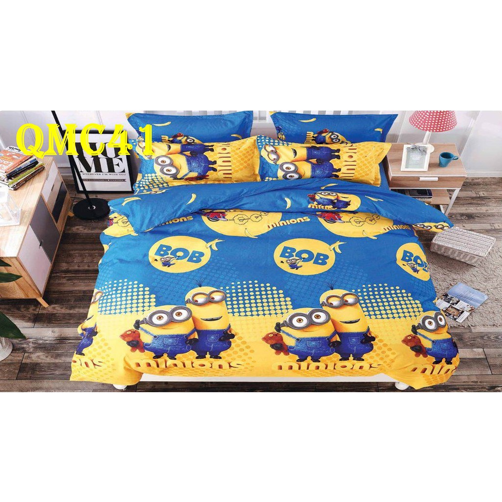 Queen King Cartoon Cotton Bedsheet comforter bolster case Set for Kids Girl Boy - Minion | cadar kartun budak | Shopee Singapore