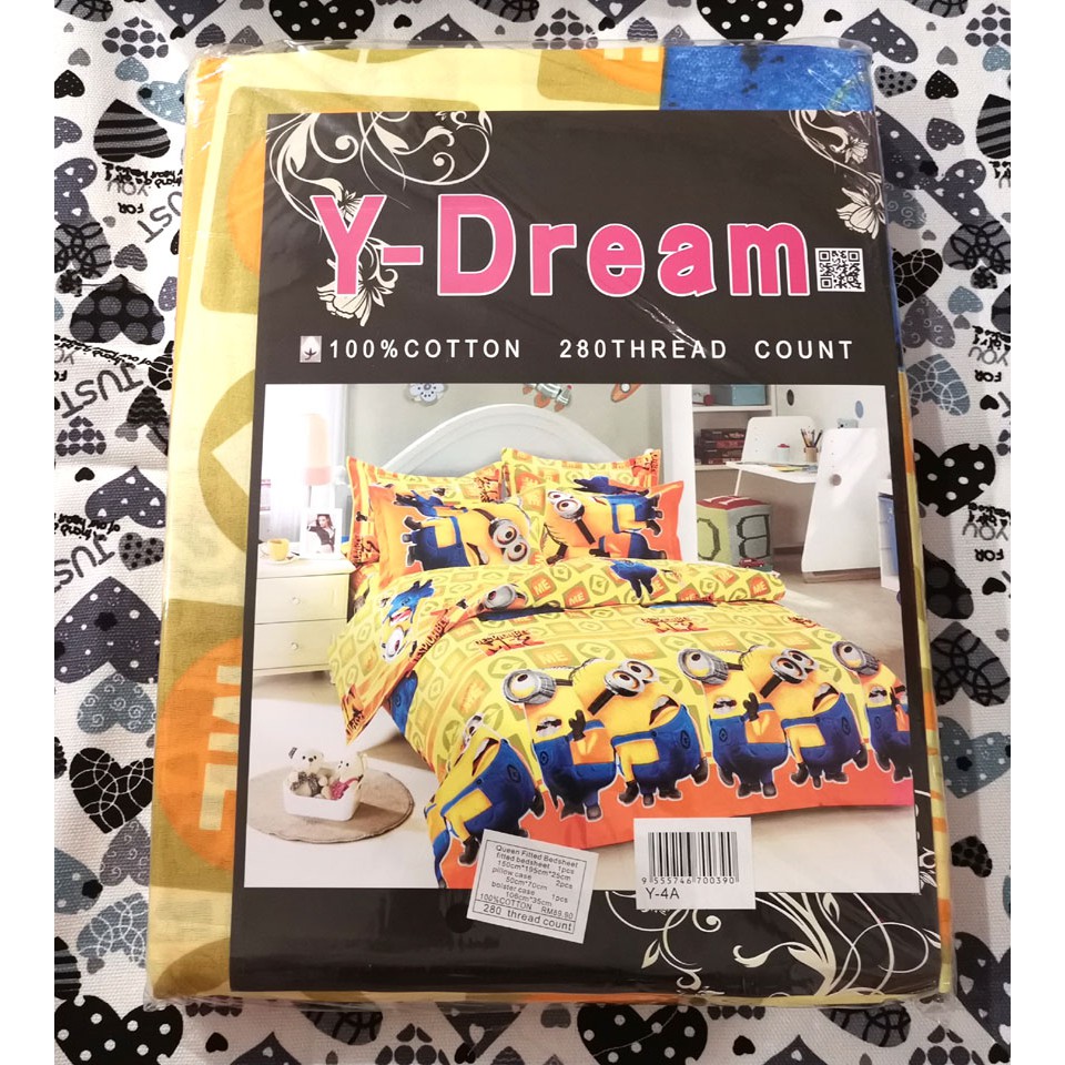 4pc MINION DESPICABLE ME QUEEN FITTED BEDSHEET 2PILLOWCASE 1BOLSTERCASE BEDDING | Shopee Singapore