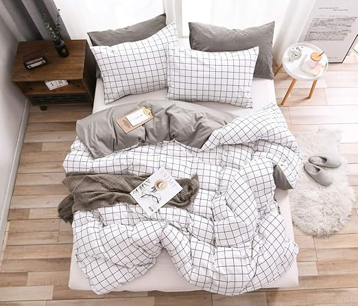 Single Duvet Cover Grid White Grey Stripe 100% Cotton Soft Bedding …
