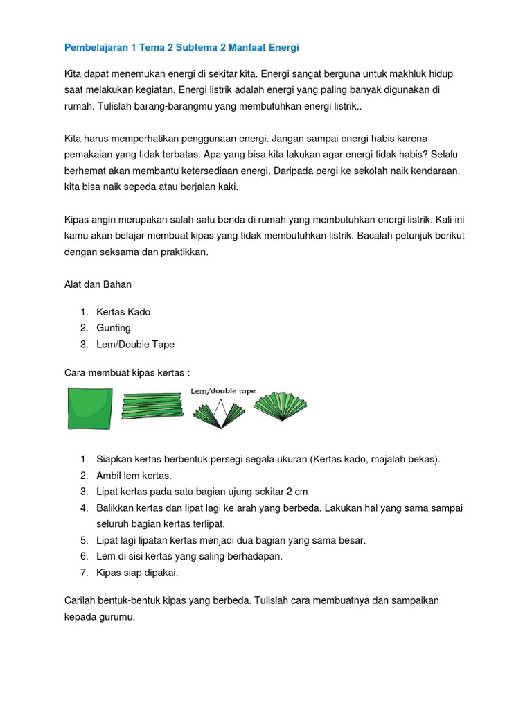 Pembelajaran 1 Tema 2 Subtema 2 Manfaat Energi
