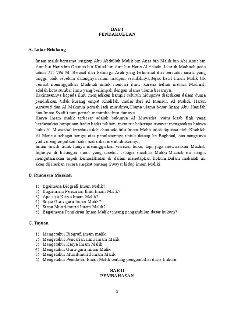 DOC) BIOGRAFI IMAM HANAFI DAN IMAM MALIKI | Afifah Zulva - Academia.edu