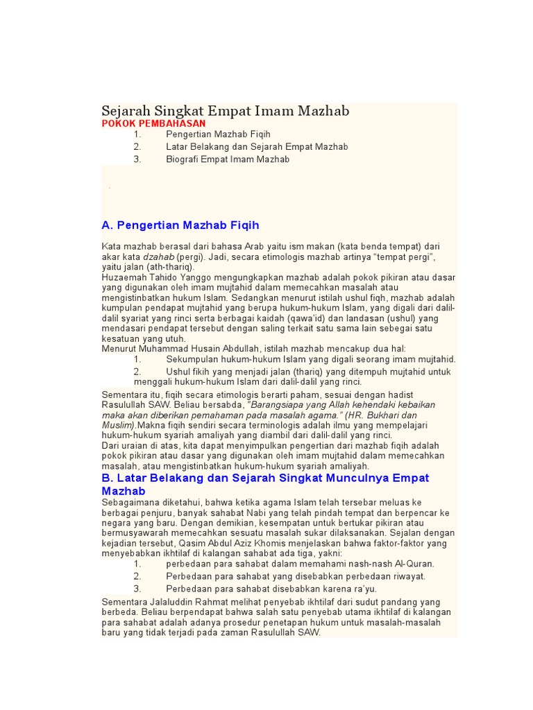 DOC) RIWAYAT EMPAT IMAM MAZHAB | Nirma Magfirandha - Academia.edu