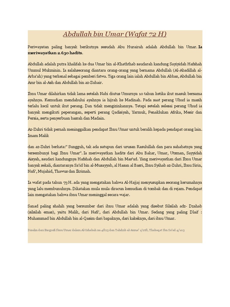 HADITS BIOGRAFI ABDULLAH BIN UMAR