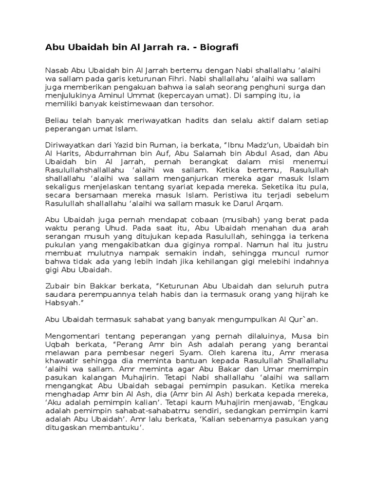 DOC) MENJADI SALAH SEORANG KEPERCAYAAN NABI: BIOGRAFI RINGKAS ABU UBAIDAH BIN AL-JARRAH | Rimbun Natamarga - Academia.edu