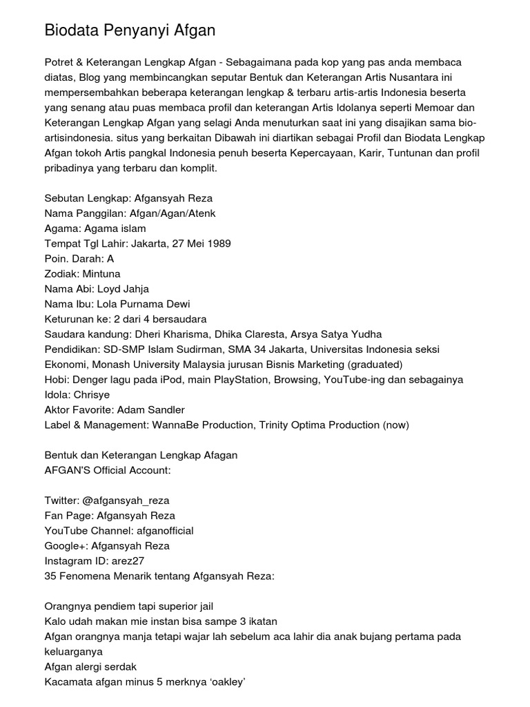 biodata afgansyah reza | EncikShino.com