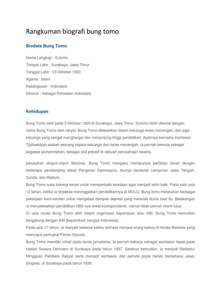 DOC) Biografi Bung Tomo Biodata | Gustianto Paalloan - Academia.edu