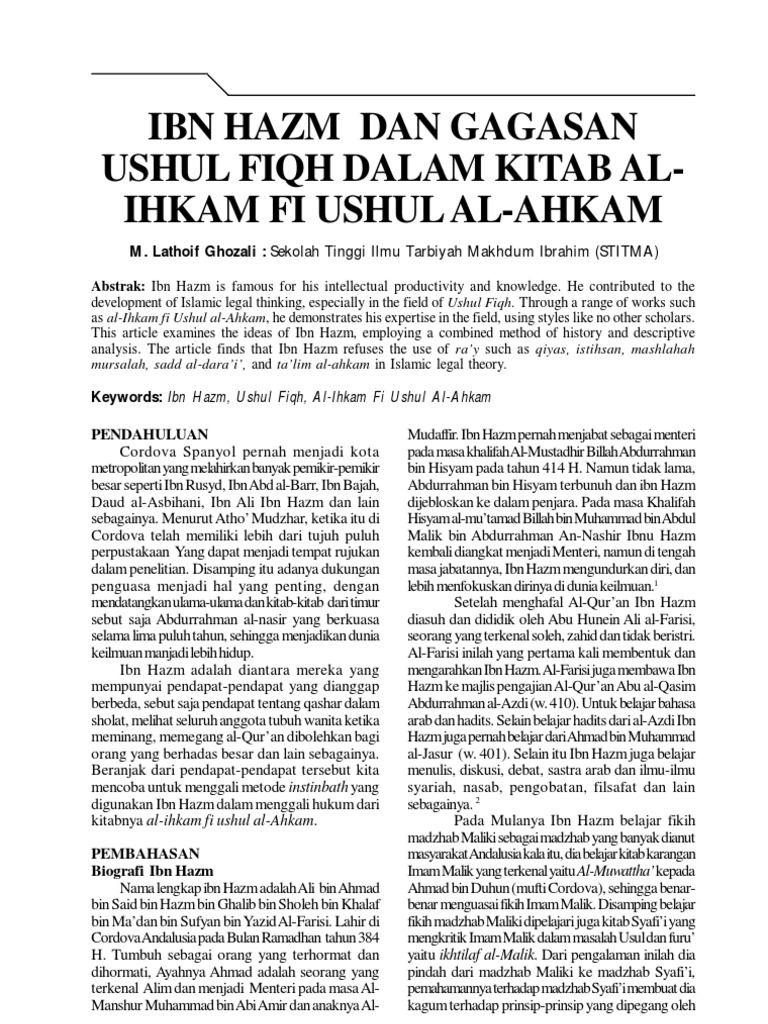 PDF) Ibnu Hazm; Pelopor Madzhab Literalis | Umar Said - Academia.edu