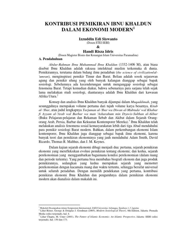 PDF) PEMIKIRAN EKONOMI BAPAK EKONOMI ISLAM; IBNU KHALDUN