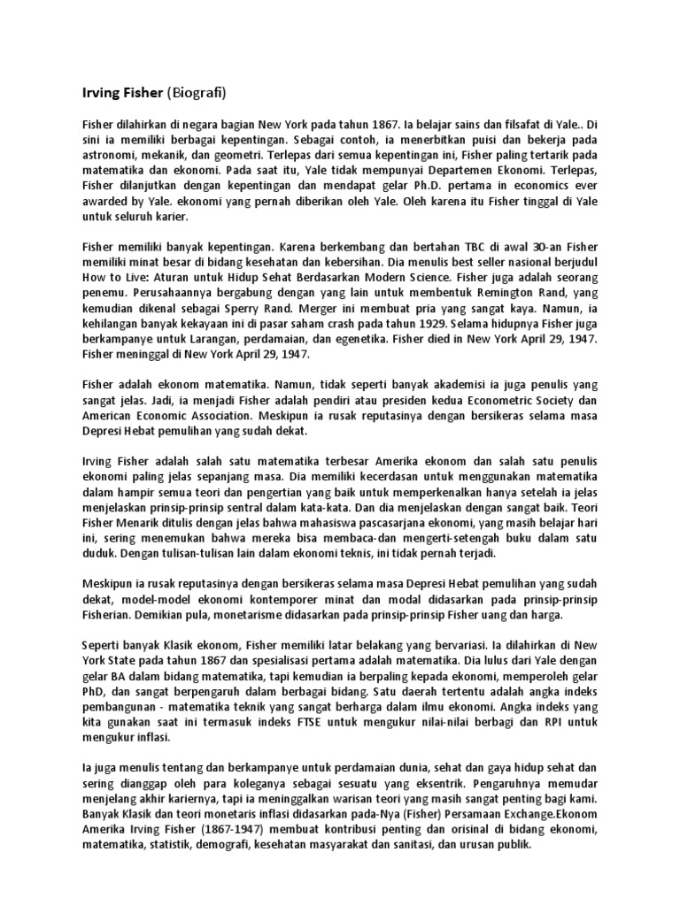 IRVING FISHER.docx - Miftahur Rahman Wyana 20120430146 IRVING FISHER BIOGRAFI Fisher dilahirkan di negara bagian New York pada tahun 1867 Ia belajar | Course Hero