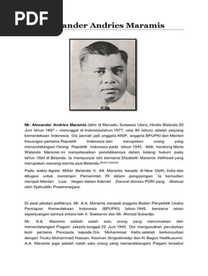 identitas dari Mr. A.A.Maramis seprti tempat tanggal lahir,pendidikan dan jasa jasanya terhadap - Brainly.co.id