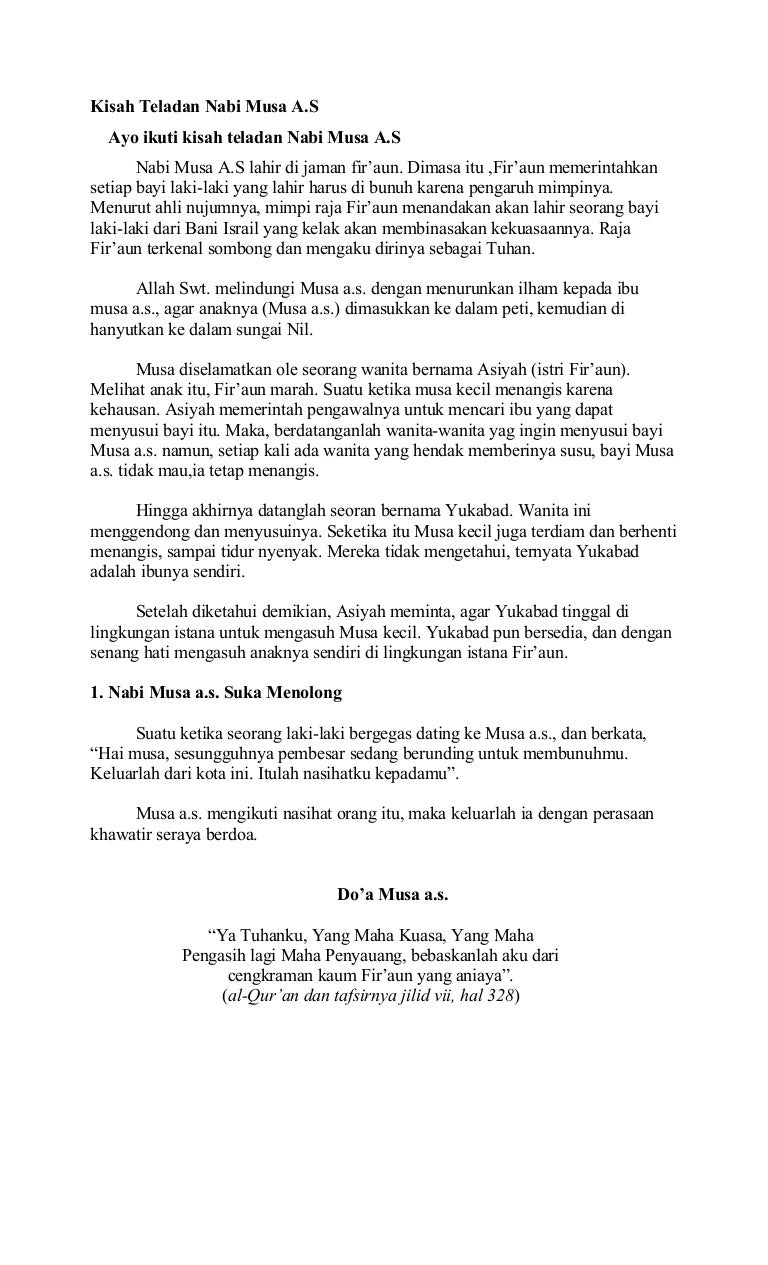 DOC) KISAH NABI MUSA AS | Cut Marda - Academia.edu