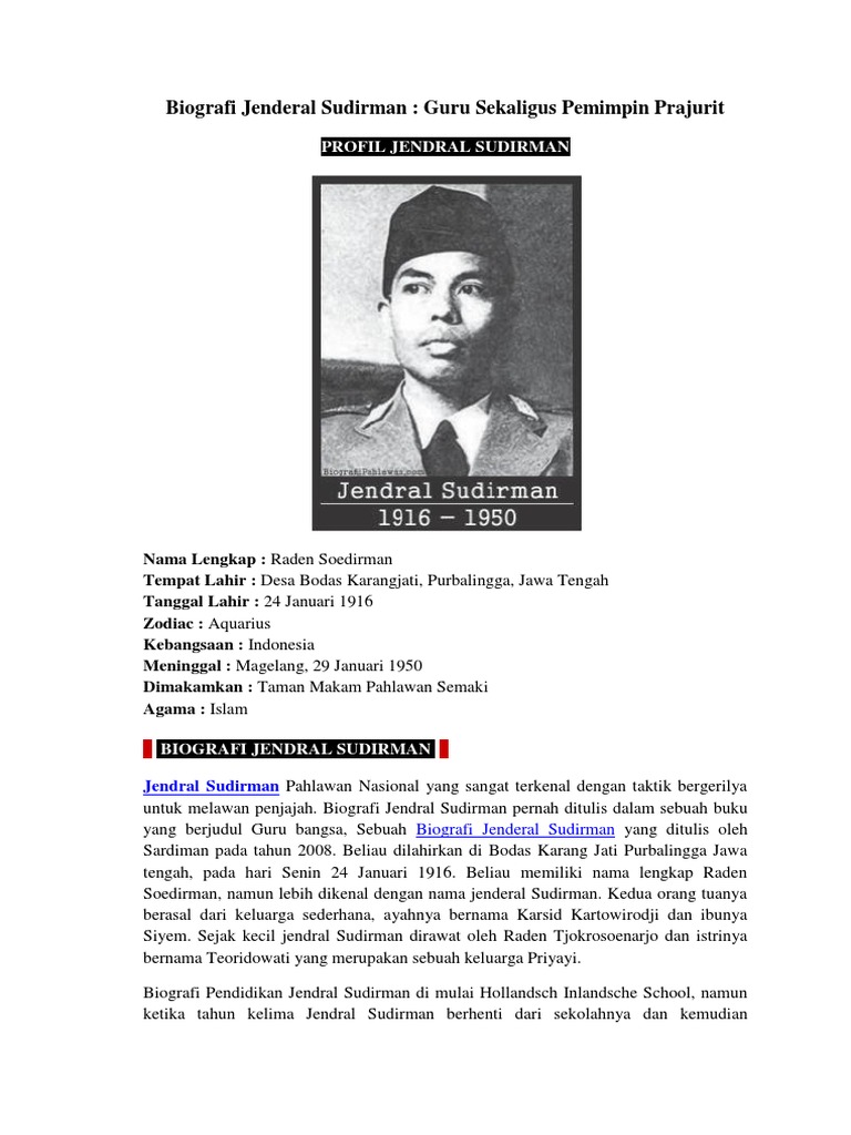 Biografi Jenderal Besar Sudirman, Pejuang Kemerdekaan dan Bapak TNI - Biografi.co.id | Biografi Tokoh Indonesia dan Dunia