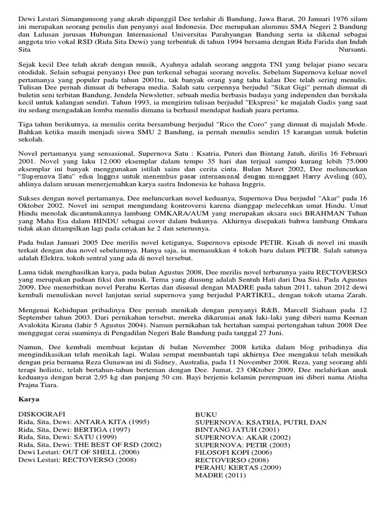 Dewi Lestari Simangunsong Yang Akrab Dipanggil Dee Terlahir Di Bandung - [DOCX Document]