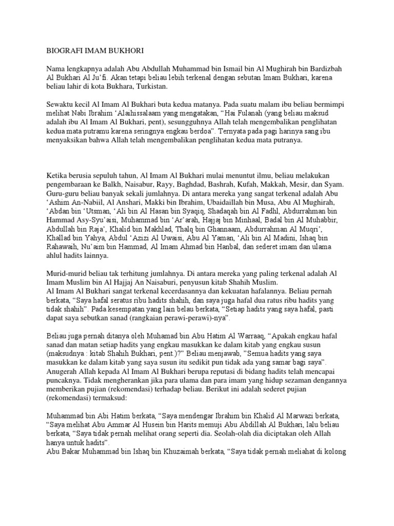 DOC) BIOGRAFI IMAM BUKHARI | pps almunasyifa - Academia.edu
