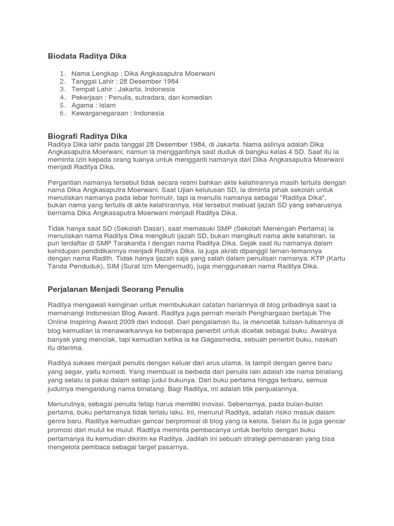 Contoh Biografi Raditya Dika - Healthy Body Free Mind
