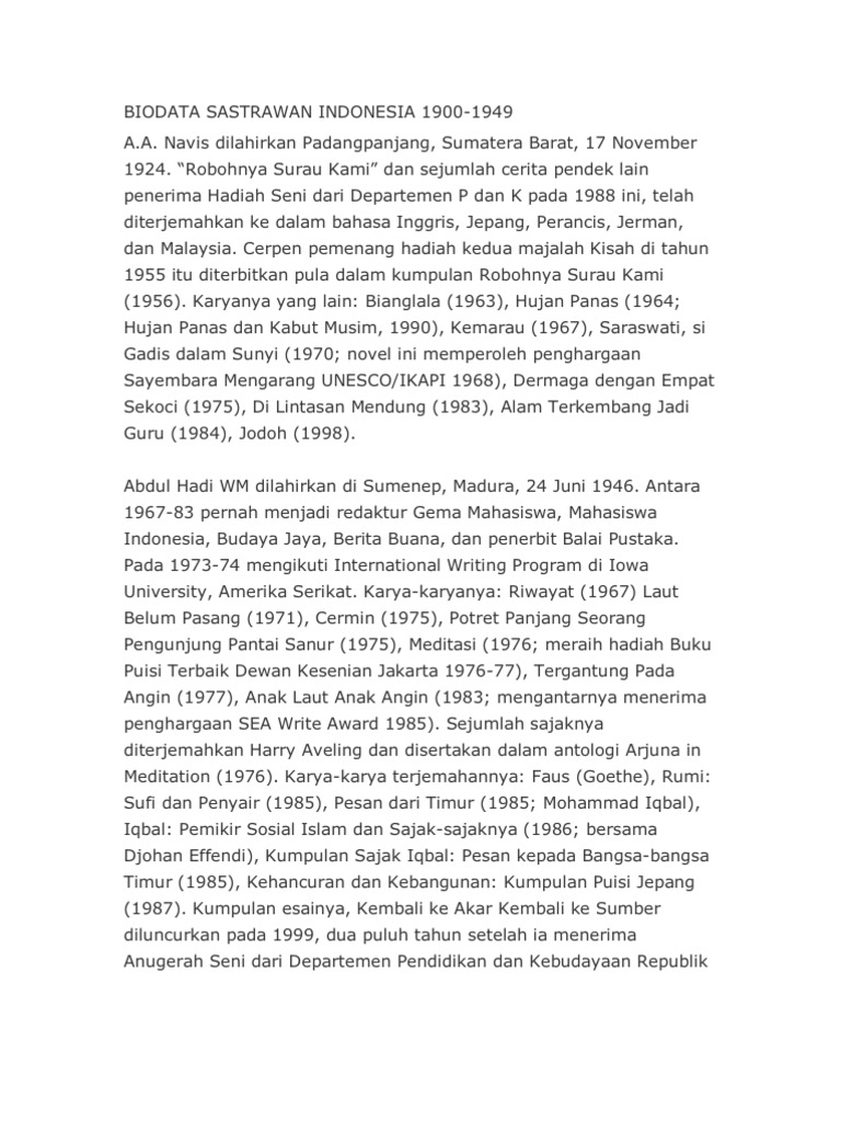Teks Biografi Tokoh Sastra Indonesia | Mikirbae.com
