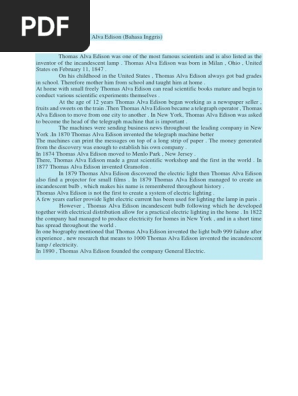 Biografi Thomas Alfa Edison Dalam Bahasa Inggris