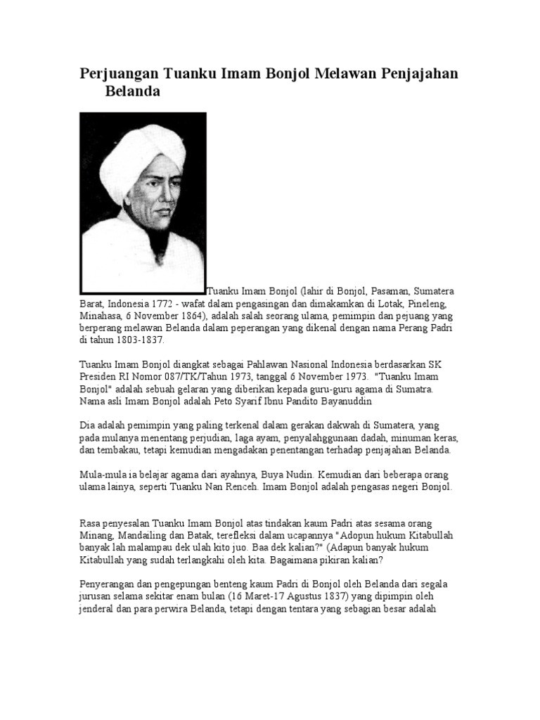 Biografi Tuanku Imam Bonjol Singkat - Jagad.id