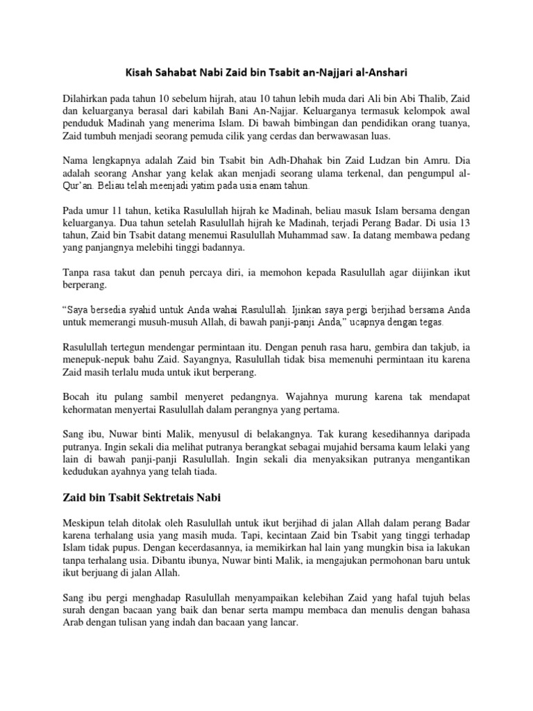 kisah islam inspiratif - Zaid Bin Tsabit Sang Penerjemah Rasulullah - Wattpad