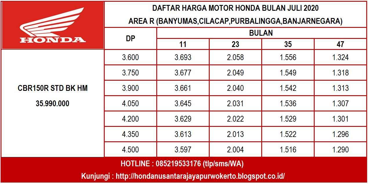 Daftar Harga ~ HONDA NUSANTARA JAYA PURWOKERTO