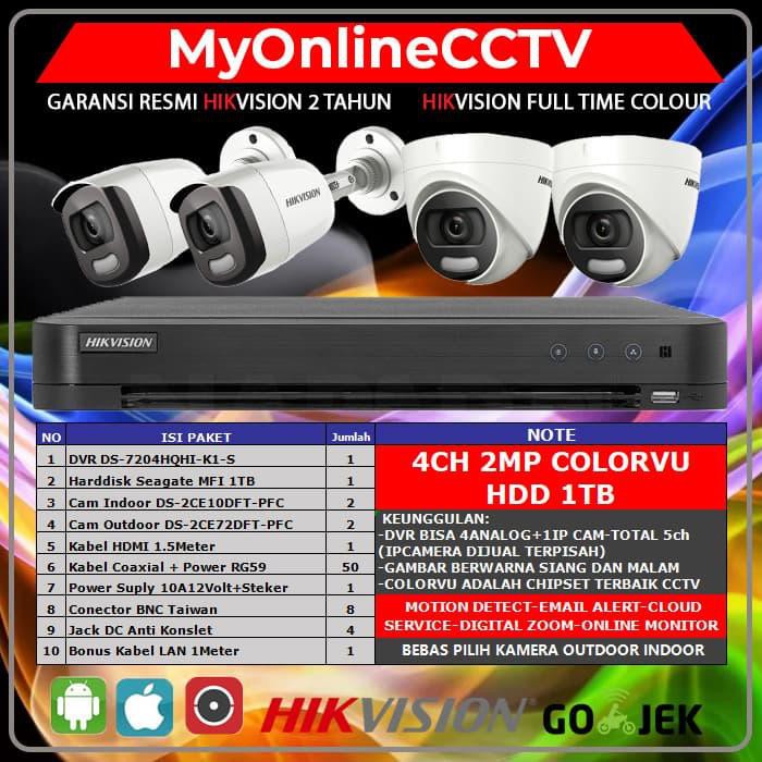 a53pku00108- Paket CCTV Hikvision 4Ch 2MP ColorVU Lengkap Siap Pasang HDD 1TB Murah | Shopee Indonesia