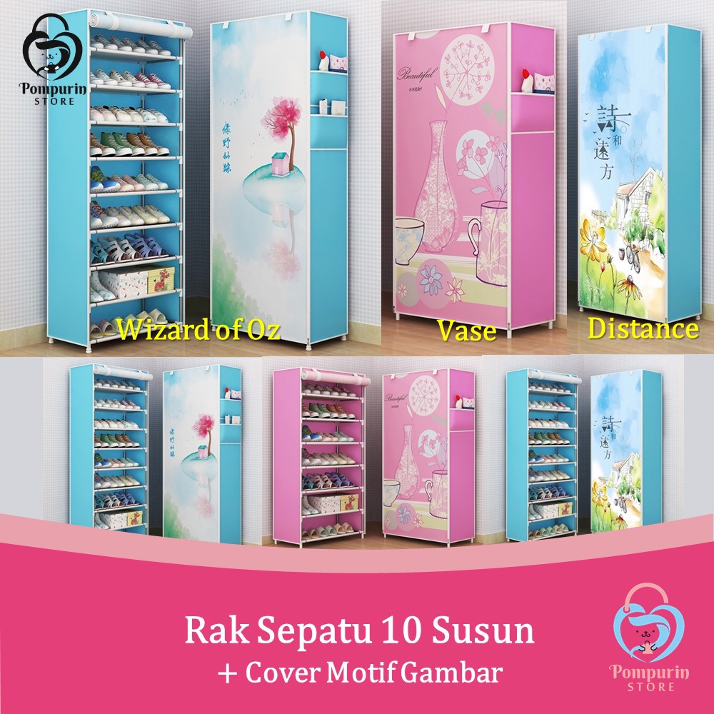 Rak Sepatu 10 Susun + Cover GAMBAR 3D KEREN - Shoes Rack with Dust Cover | Shopee Indonesia