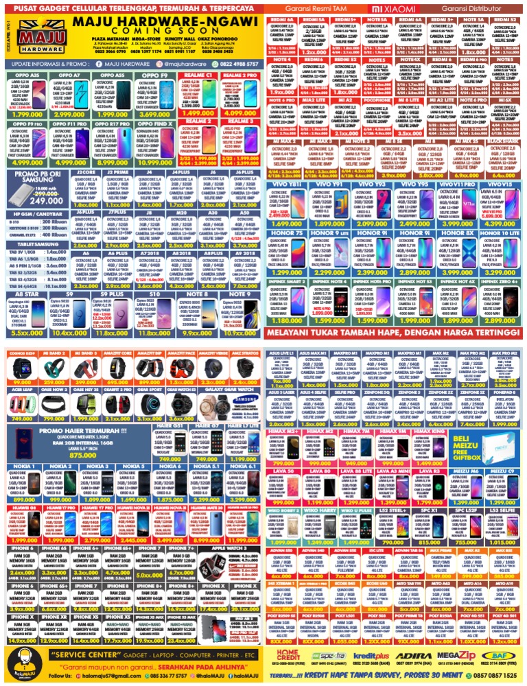 Brosur Harga Hp Maju Hardware Madiun 2020