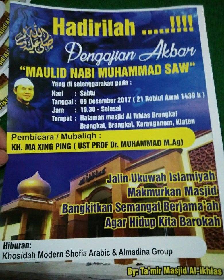 www.kabarklaten.id Twitter: “Hadirilah…!!! Pengajian Akbar Maulid Nabi Muhammad SAW Sabtu, 9 Desember 2017 di Masjid Al-Ikhlas Brangkal Karanganom Klaten Ust. KH. MA XING PING