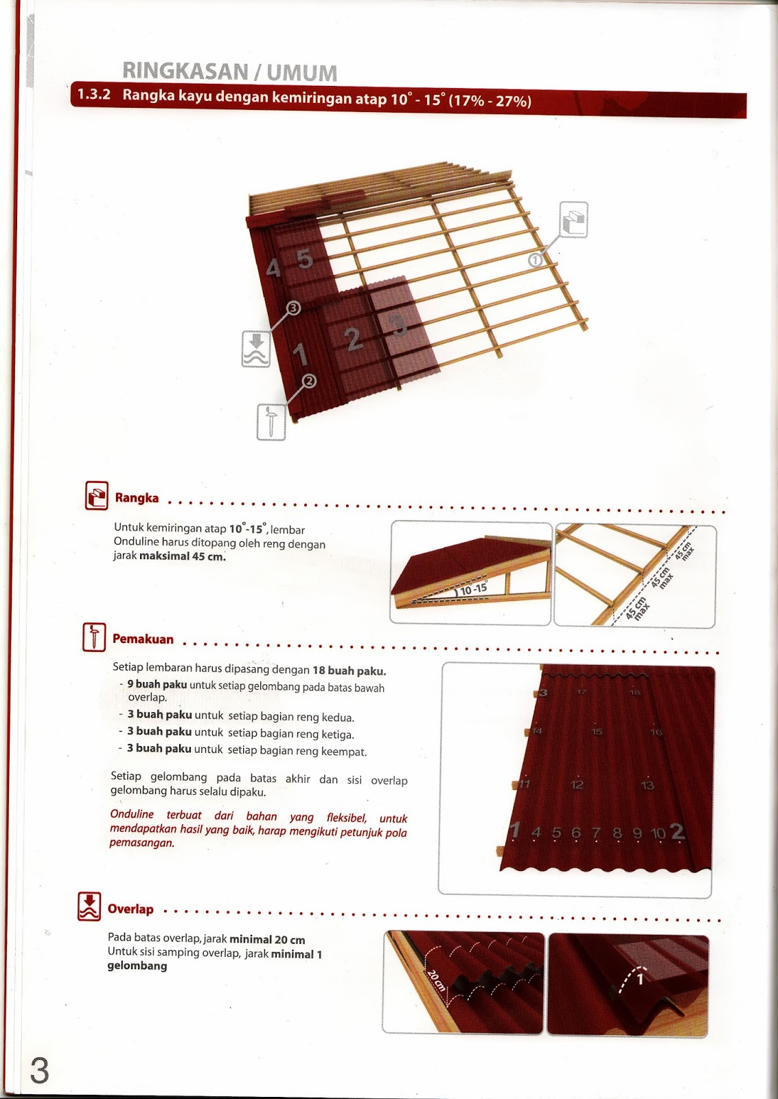 Pemasangan Atap Onduline Yang Benar Untuk Sudut Kemiringan 5° - 10°