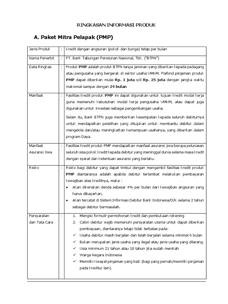 Ringkasan Informasi Produk/ Layanan Kredit Pensiun Sejahtera/ Kredit Pensiun
