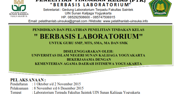 DIKLAT PENELITIAN TINDAKAN KELAS ( PTK ) “BERBASIS LABORATORIUM” SMP/MTS, SMA/MA DAN SMK ~ Program Pelatihan Kepala Laboratorium Sekolah/Madrasah UIN Sunan Kalijaga