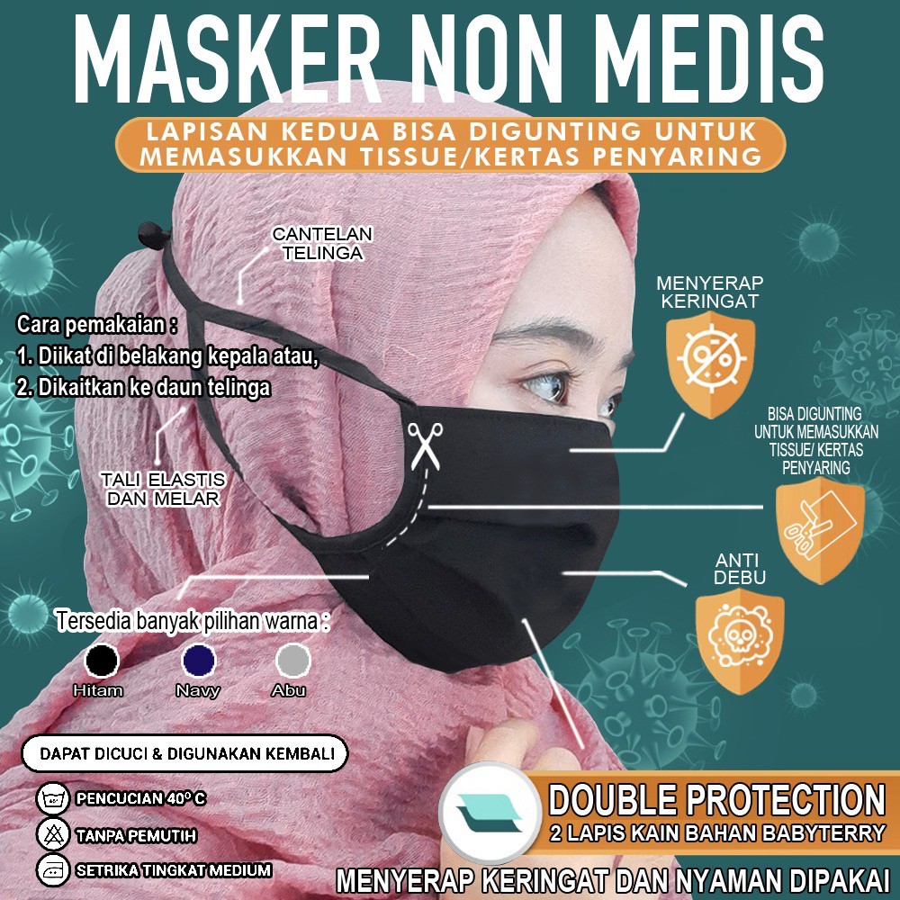 Masker kain 2 lapis tebal jahitan tengah- masker hijab earloop dan headloop dengan tali bisa dicuci | Shopee Indonesia