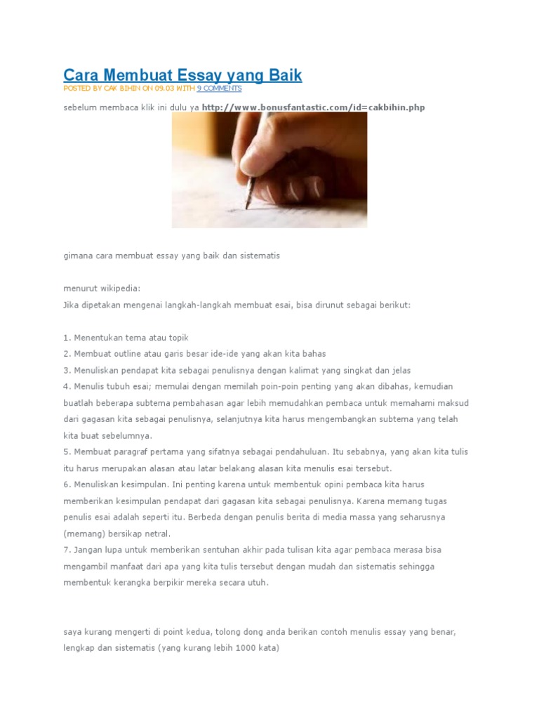 Menulis Essay Yang Baik Dan Benar