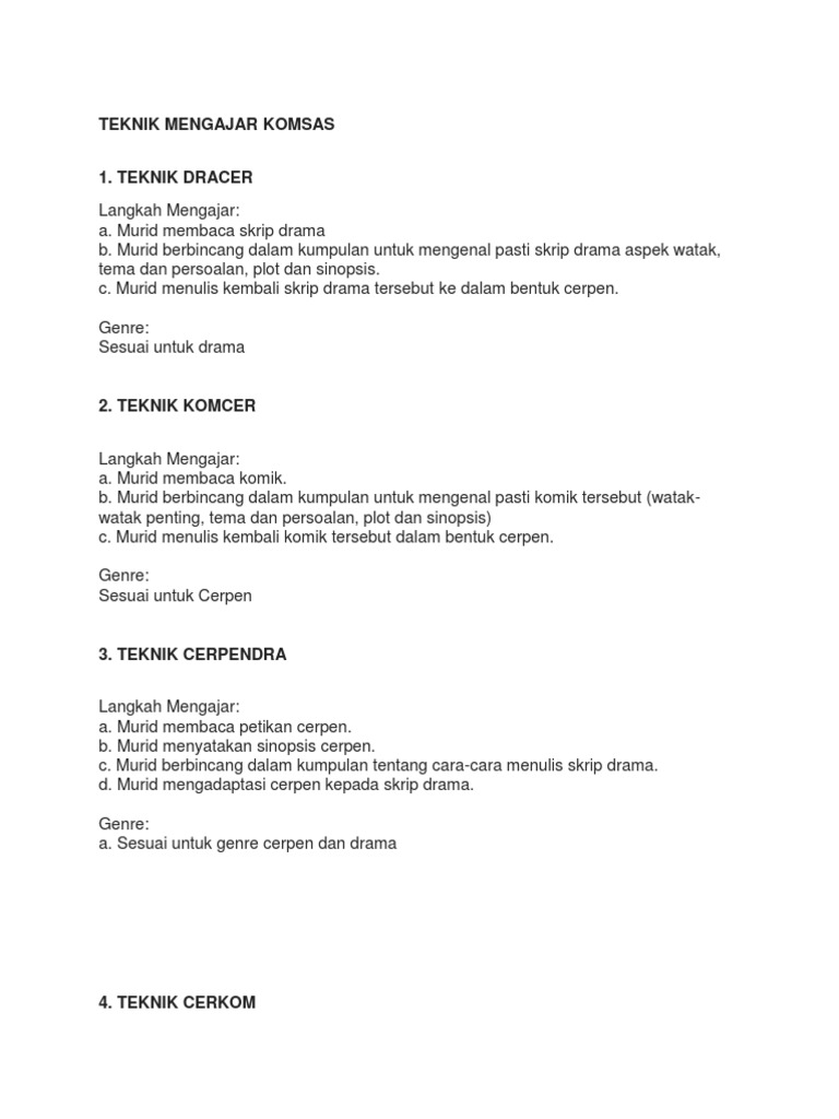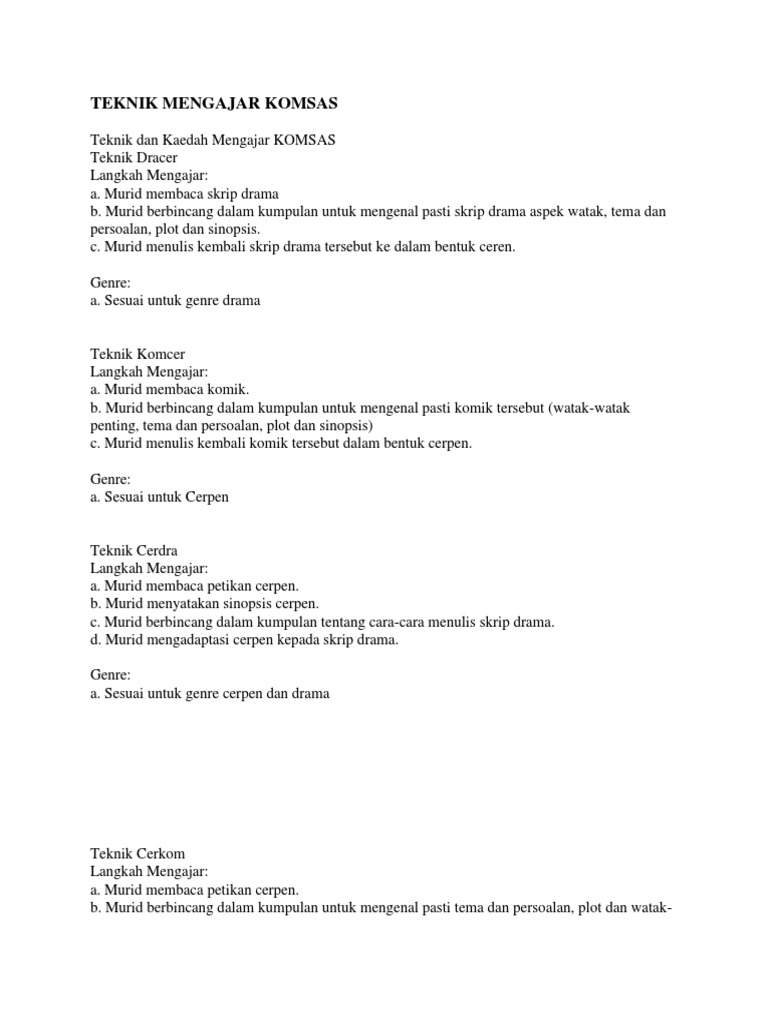 DOC) TEKNIK-TEKNIK MENGAJAR KOMSAS | dayangfitriza mohamatsaad - Academia.edu