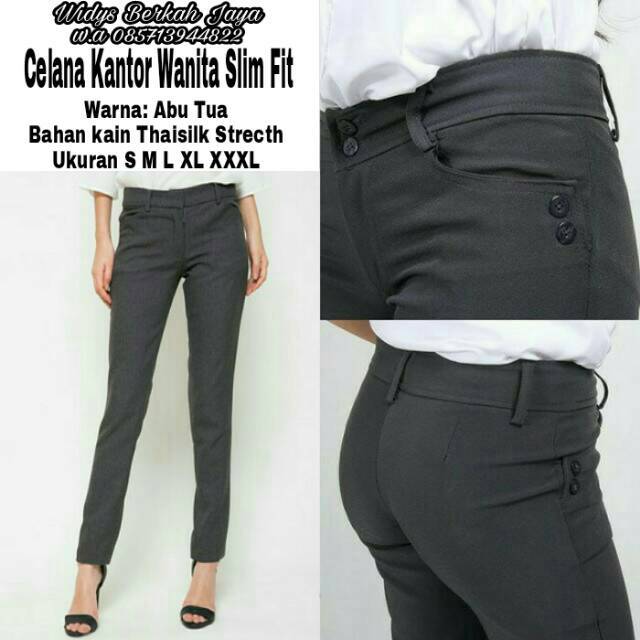 Celana Kerja Wanita Bahan Kantoran - Celana Panjang Formal Kerja Kain Cewek Warna Abu Abu | Shopee Indonesia