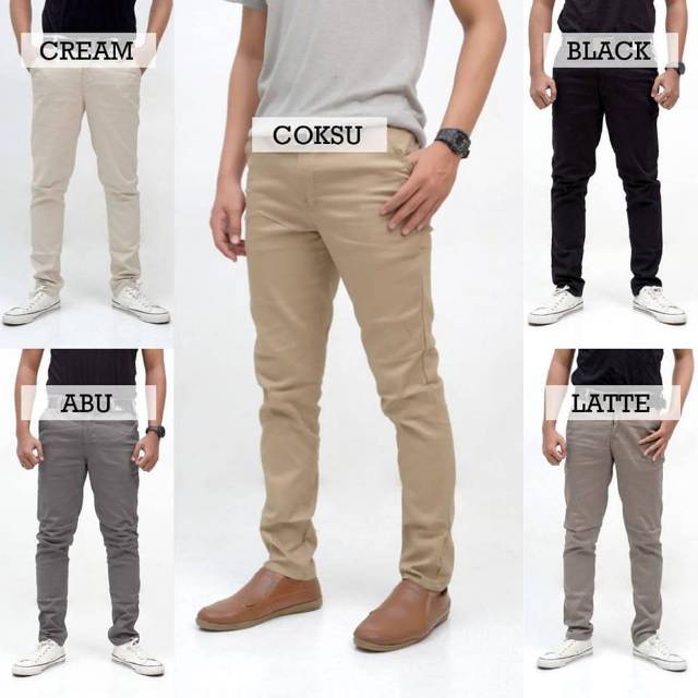 Celana panjang chino pria/cowok - cino/chinos bahan kain katun stretch | Shopee Indonesia