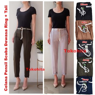 Celana Kain Formal Kerja Wanita Kantor Cewek Bahan Kulot Pants Ka KV767 Pensil Scuba Ring Tali | Shopee Indonesia