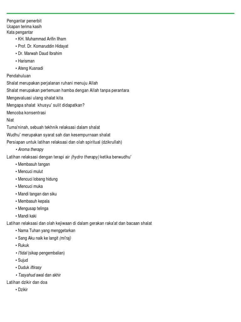 Daftar Isi: Pelatihan Shalat Khusyu