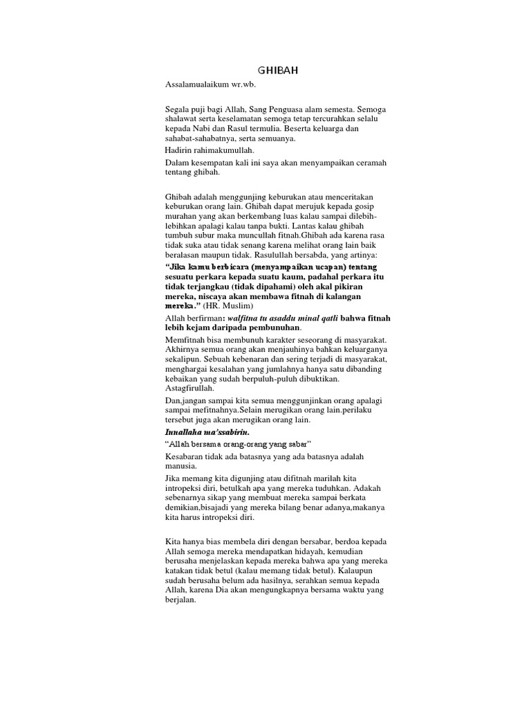 Contoh Ceramah Singkat Tentang Ghibah - Jago Berpidato | Apa yang kamu cari ada disini !!