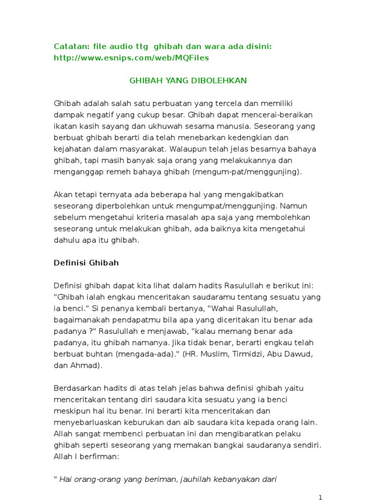 Kumpulan ceramah Yusuf mansur download gratis: Bahaya Ghibah