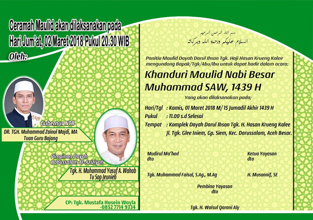 Gubernur NTB Tuan Guru Bajang dan Tu Sop akan Isi Ceramah Maulid Akbar di Dayah Darul Ihsan