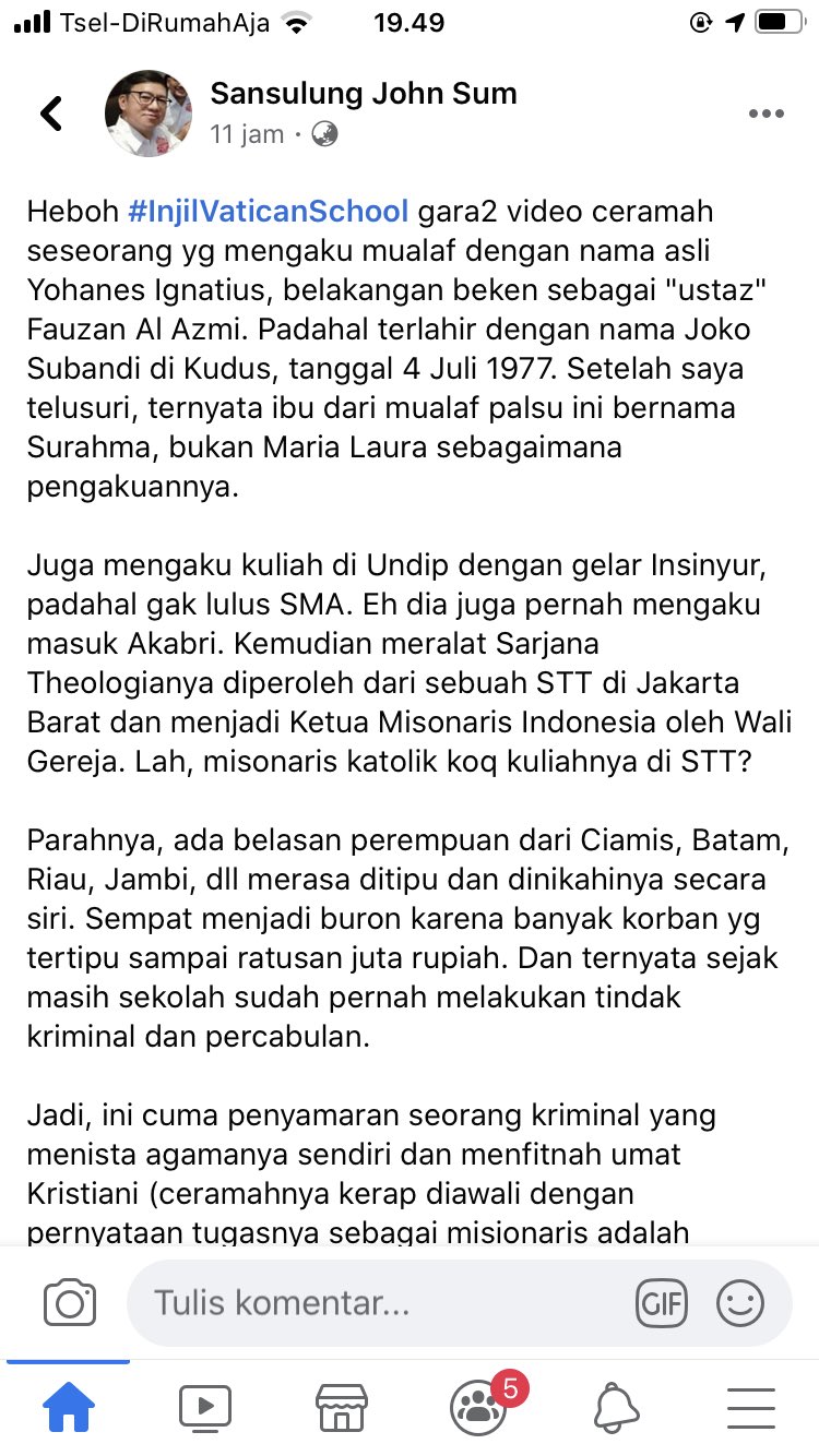 Komunitas Katolik Garis Lucu op Twitter: “Insinyur Ignatius Yohanes Sarjana Teologi, yang mengaku anak Kardiinal yang beken dengan nama Ustadz Fauzan Al Azmi ternyata nama aslinya Joko Subandi, dan BUKAN mualaf. Katomin