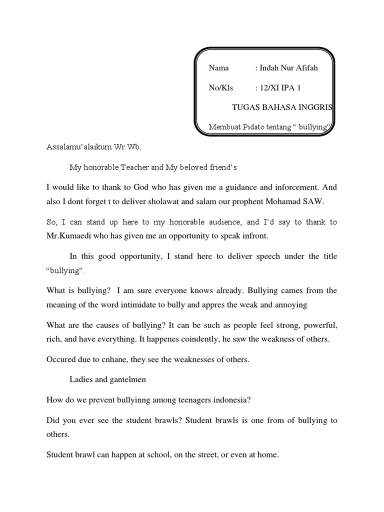Contoh Pidato Bahasa Inggris Tentang Bullying - Paja Tapuih