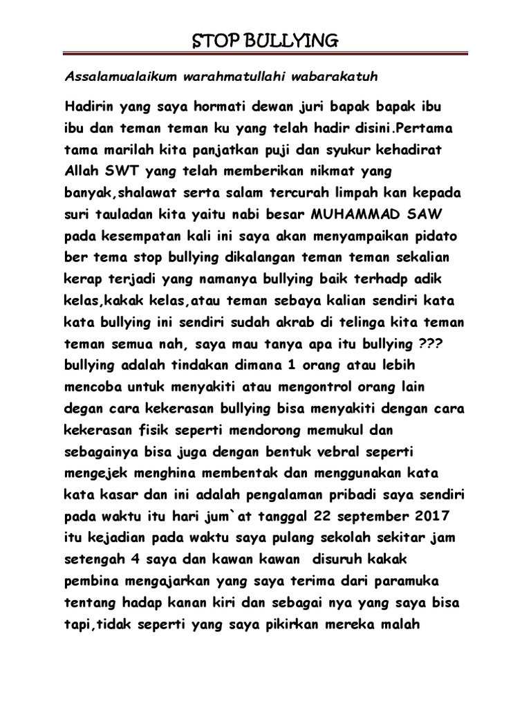 DOC) Zahra Nur Syabani X – PM 2 " PIDATO TENTANG BULLYING " | zahra syabani - Academia.edu