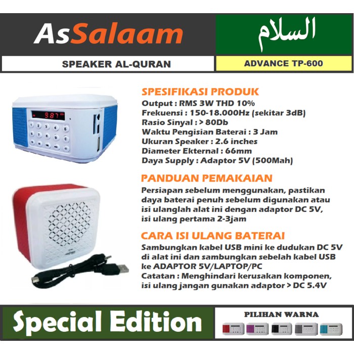 Jual SS Speaker Al Quran TP600 15Qori Murottal Azan Takbiran Doa …
