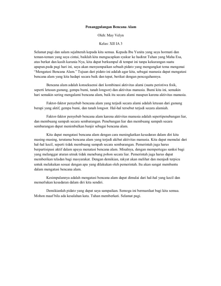 Contoh Pidato Bencana Alam