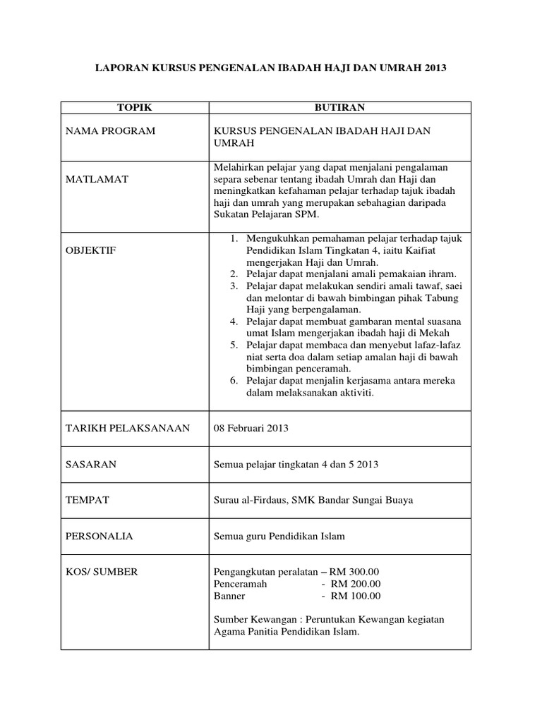 Laporan Kursus Pengenalan Ibadah Haji Dan Umrah 2013