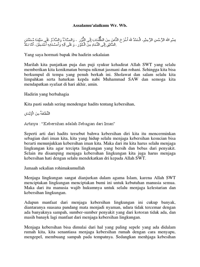 Pidato Agama Islam Kebersihan Sebagian Dari Iman.docx