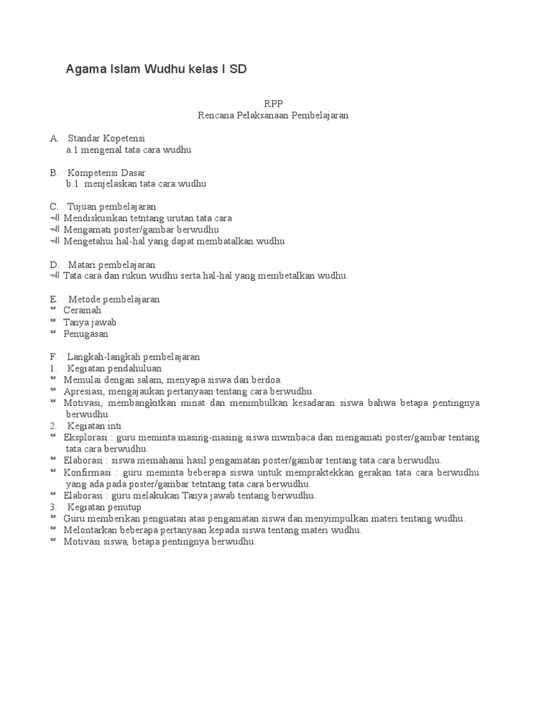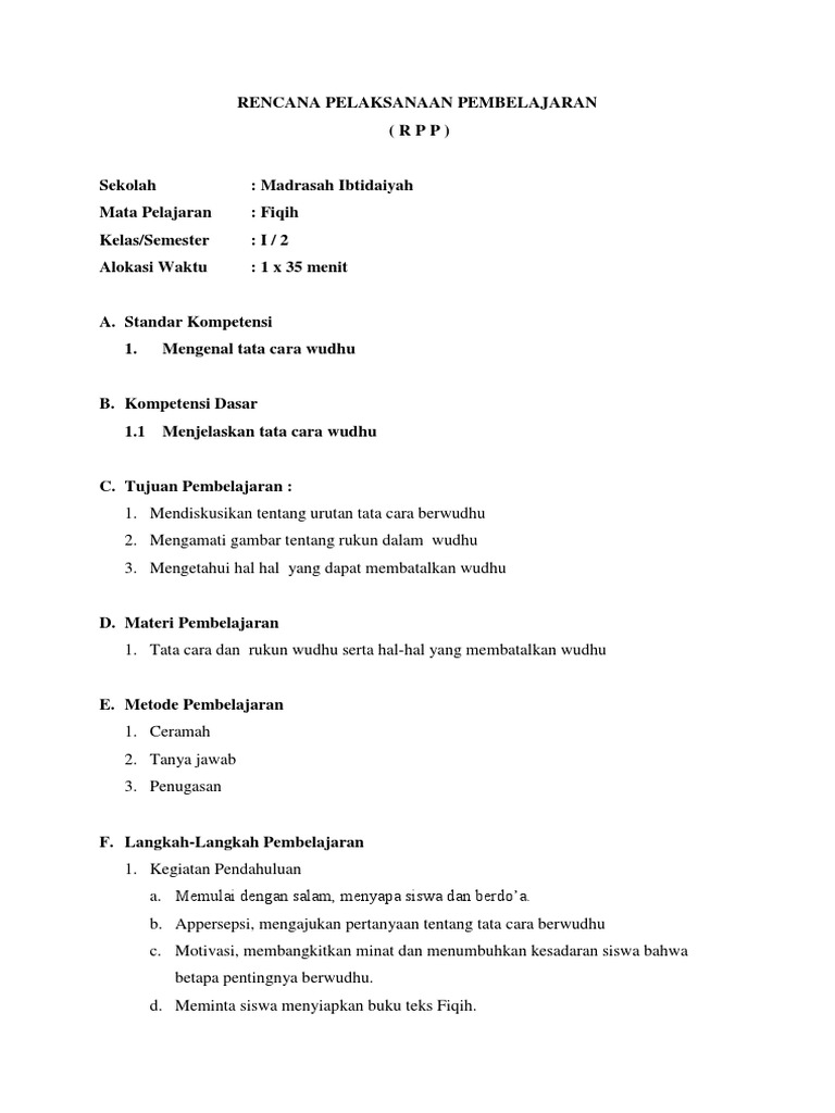 RPP Fiqih Kelas 1