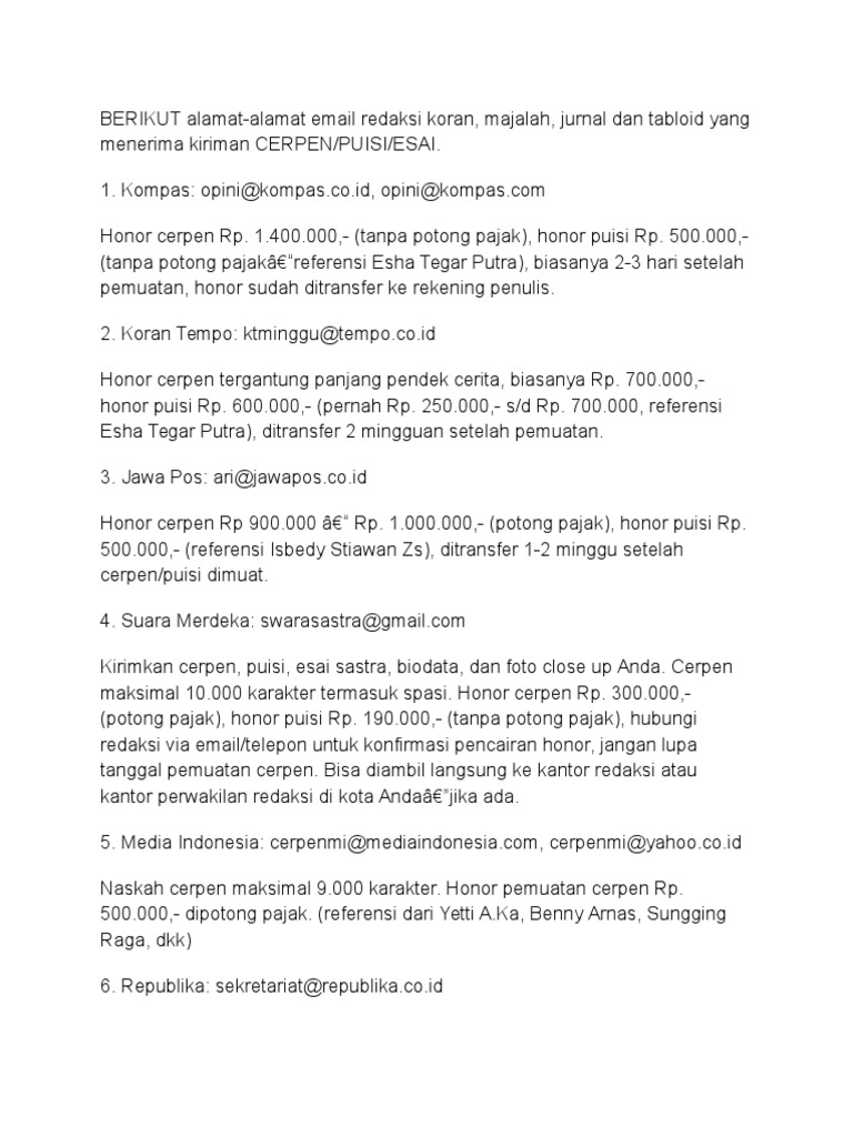 Honor bisa sampai 1,4 juta/cerpen – Inilah alamat-alamat email …